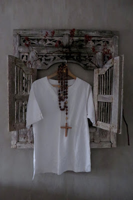 De omlijsting van een spiegel (spiegel niet meer aanwezig) hing bij een mijn vriendin in de tuin helemaal verweerd, zij deed hem weg en ik heb hem schoon geboend en in de slaapkamer gehangen.